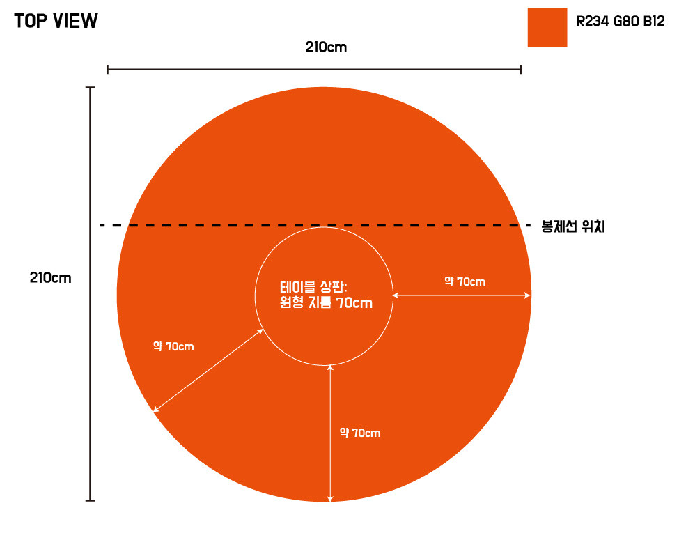 테이블보 사이즈: 원형 지름 210cm (봉제선 1개)