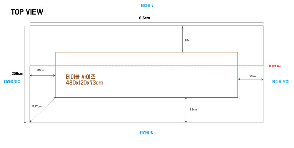 테이블 사이즈(가로x세로x높이): 480x120x73cm